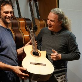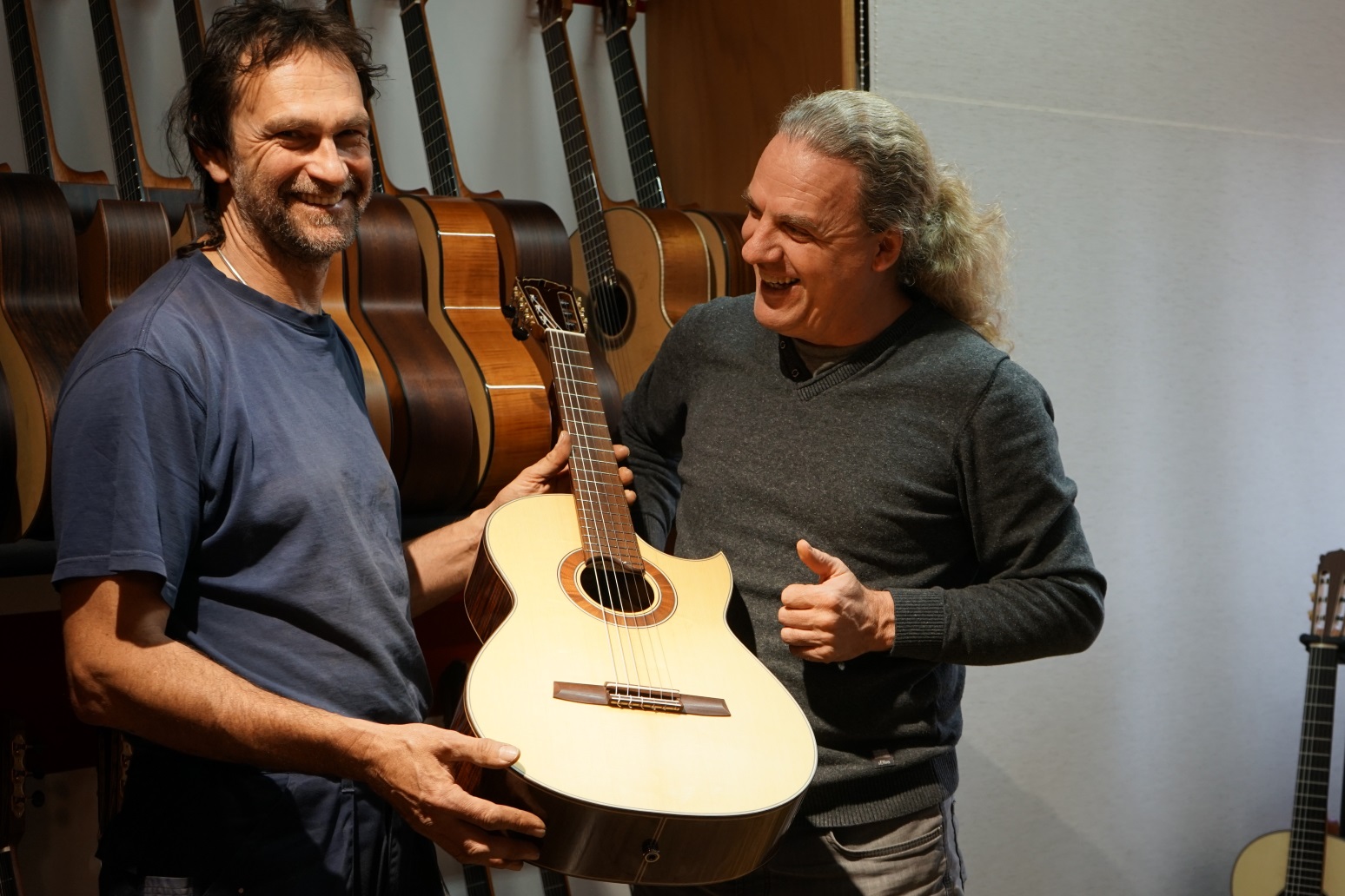 Übrigens - Dirk Denzer, Künstler, Produzent und kreativer Kopf des Festivals spielt eine Hanika Gitarre , auch auf der Bühne.