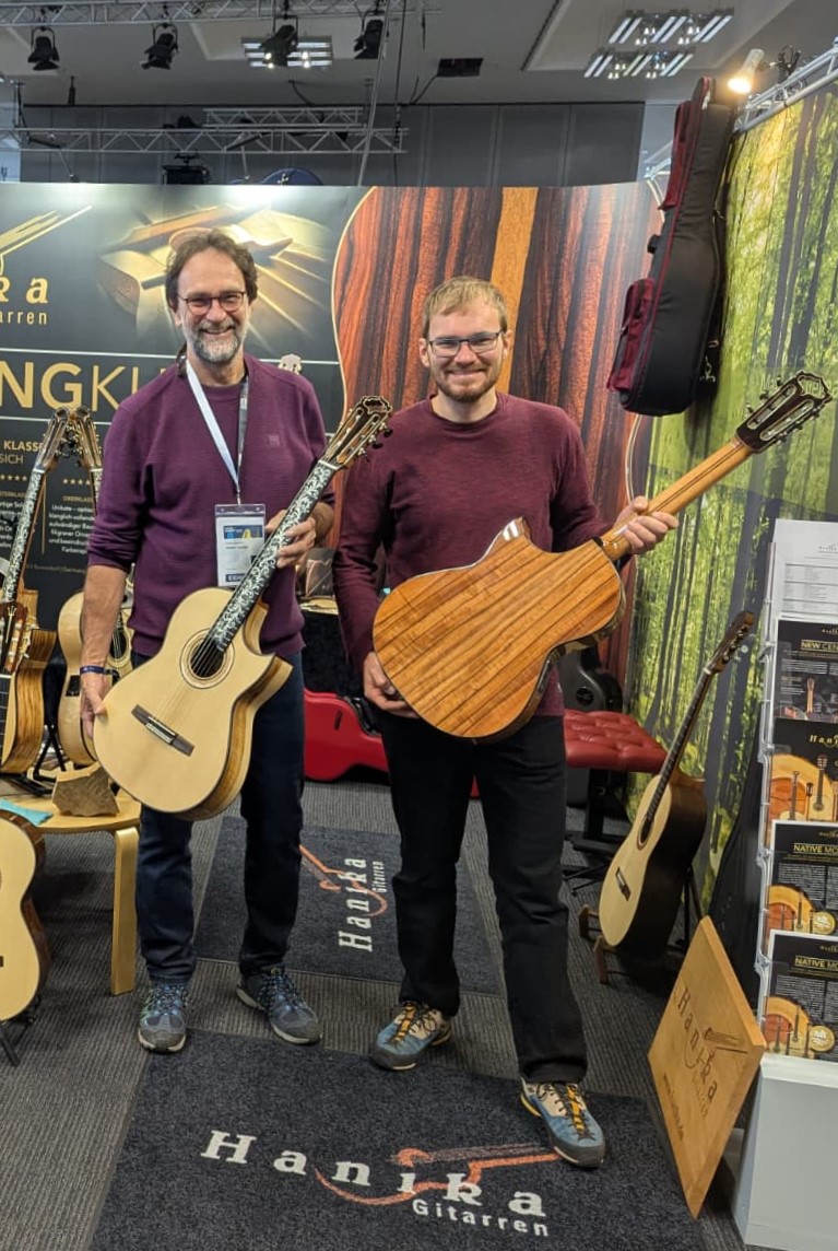 Armin und Tobias werden Hanika Gitarren mit den unterschiedlichen Deckenbeleistungen und das Crossover-Modell dabei haben, die dann natürlich vor Ort auch getestet werden können. Die beiden werden gerne mit Ihnen über die jeweiligen Vorzüge der verschiedenen Modelle fachsimpeln und Ihre Fragen beantworten.