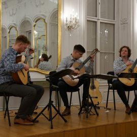 Das aus Ungarn stammende Tritonus Guitar Trio (Levente Molnár, Gergely Szurgyi und Bálint Varga) begeistert mit Temperament und Präzision und startete nach dem Gewinn des renommierten GFA-Gitarrenwettbewerbs in den USA eine beeindruckende Karriere.