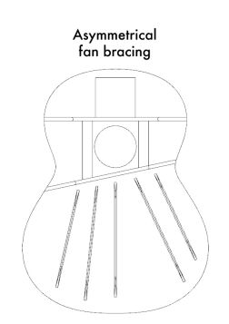 A type of bracing system with domed soundboard that was developed by Antonio Torres (1817 – 1892). The struts have been made flatter behind the bridge and simultaneously stiffened in front of the bridge. This design is a response to the asymmetrical nature of the pressure and tension forces to which soundboards are exposed. The consequence is that it is considerably easier to work thus improving responsiveness (attack) and producing greater dynamics.